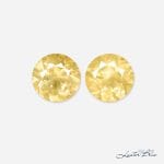 This pair of 2ct unheated yellow sapphires is round brilliant cut and well matched, making them ideal for earrings. Finding such closely matched sapphire pairs is rare and challenging.